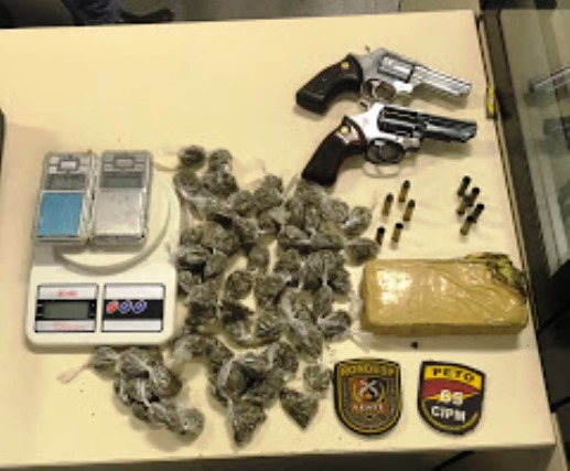 De acordo com os policiais, duas armas de fogo que estavam com os dois homens foram apreendidas e encaminhadas para a perícia técnica. Também foram apreendidas várias buchas de maconha e um tablete da mesma droga prensada.