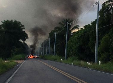 Moradores do bairro de Machadinho, em Camaçari, realizam um protesto na BA-530, na Estrada de Cascalheiras, na manhã desta sexta-feira (17). O grupo reivindica abastecimento de água na comunidade.