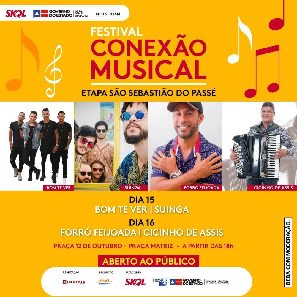 A cidade recebeu o convite da Skol e será uma das 10 sedes do evento. Além de São Sebastião do Passé, o Festival Conexão Musical passará por Madre de Deus, Santo Amaro, Cachoeira, Conceição do Coité, Ipirá, Rui Barbosa, Jaguaquara, Ipiaú e Gandu.