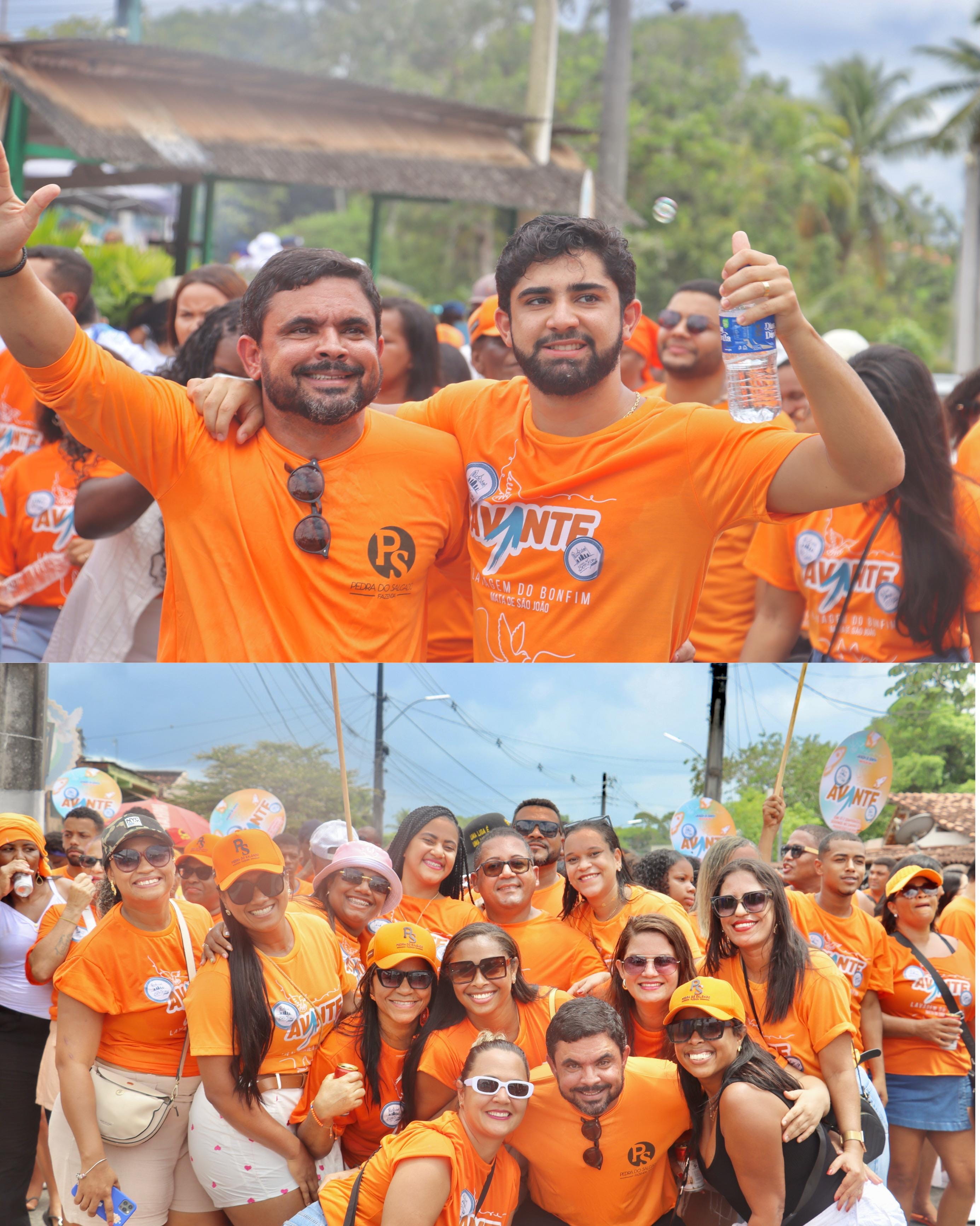 Na manhã do último domingo, 16, uma multidão vestida de laranja foi às ruas de Mata de São João para prestigiar os tradicionais festejos em homenagem ao Senhor do Bonfim. Entre os presentes, o prefeito de Itanagra, Marcus Sarmento (AVANTE), ao lado de seu filho, Lucas Sarmento, presidente do partido na cidade, também esteve acompanhado por grandes nomes da política regional e estadual.