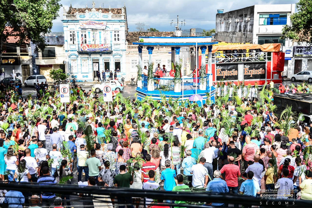 Às 8 horas deste domingo (25), foi realizada uma bênção na Praça Luiz Nogueira e, logo após, foi realizada uma procissão em que celebra a entrada de Jesus em Jerusalém montado em um jumentinho, como símbolo de humildade, e a sua aclamação pelo povo simples que O considerava um rei.
