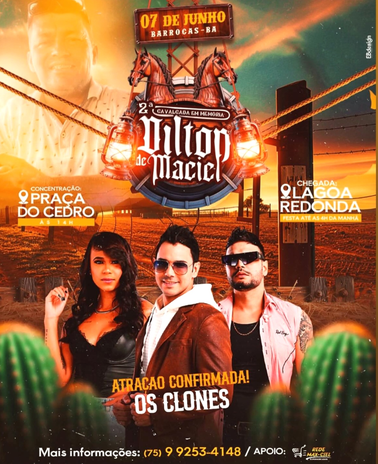 O evento reunirá vaqueiros e vaqueiras de toda a região, celebrando a tradição e o legado do saudoso comerciante na Praça do Cedro, com chegada na Lagoa Redonda e entretenimento garantido com a primeira atração confirmada, a banda Os Clones.