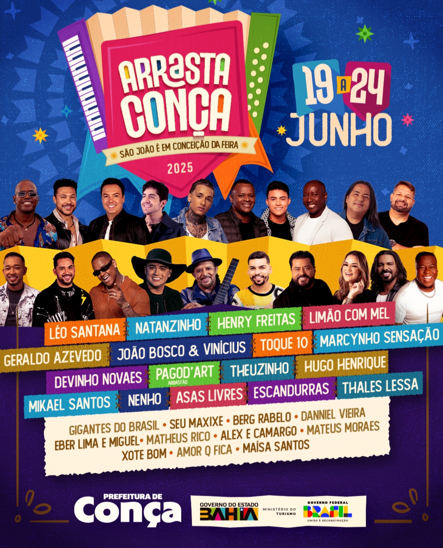 Com o slogan “São João é em Conceição da Feira”, o evento acontece de 19 a 24 de junho, reunindo atrações de renome nacional, estadual e regional. A proposta é consolidar o Arrasta Conça como a maior festa junina do maior São João do Recôncavo, atraindo milhares de visitantes, turistas e moradores, que terão a oportunidade de festejar, comprar, e impulsionar a economia local.