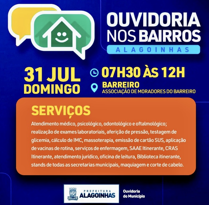 A Ouvidoria nos Bairros é um projeto da Prefeitura Municipal de Alagoinhas que conta com o apoio de diversos parceiros na prestação de serviços gratuitos à população, contabilizando mais de 25 mil atendimentos ao todo.
