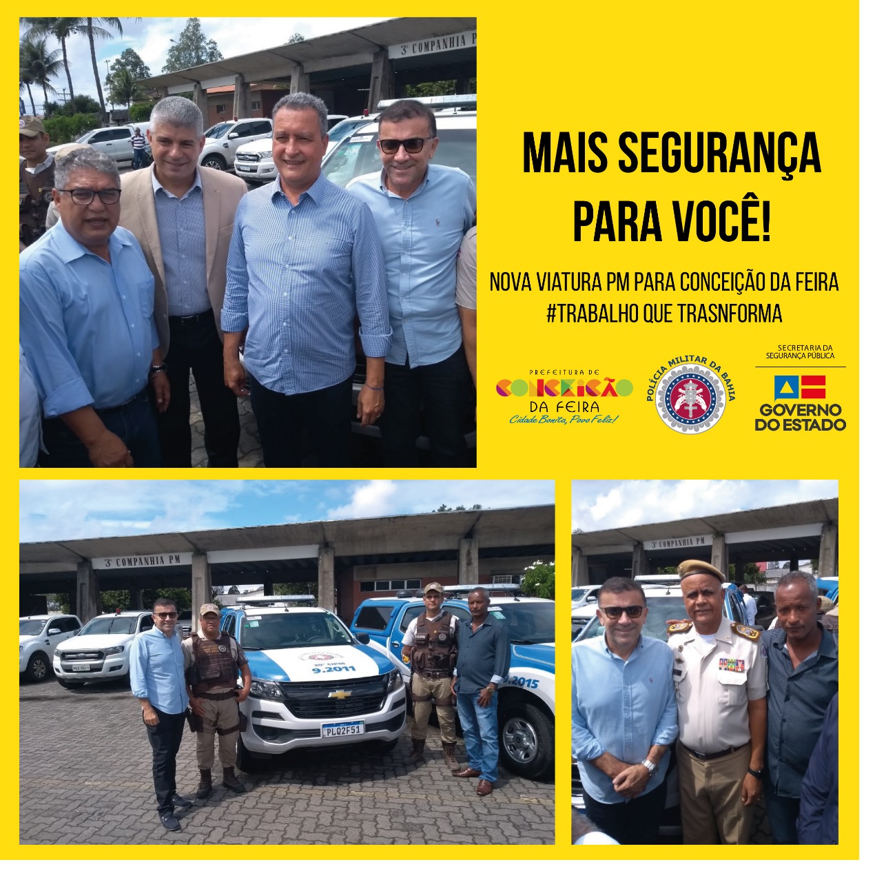 O Prefeito Pompílio, juntamente com o vereador Joildo França e o secretário municipal de Administração Fabio Menezes receberam hoje do Governo da Bahia, uma nova viatura Policial para o município de Conceição da Feira.