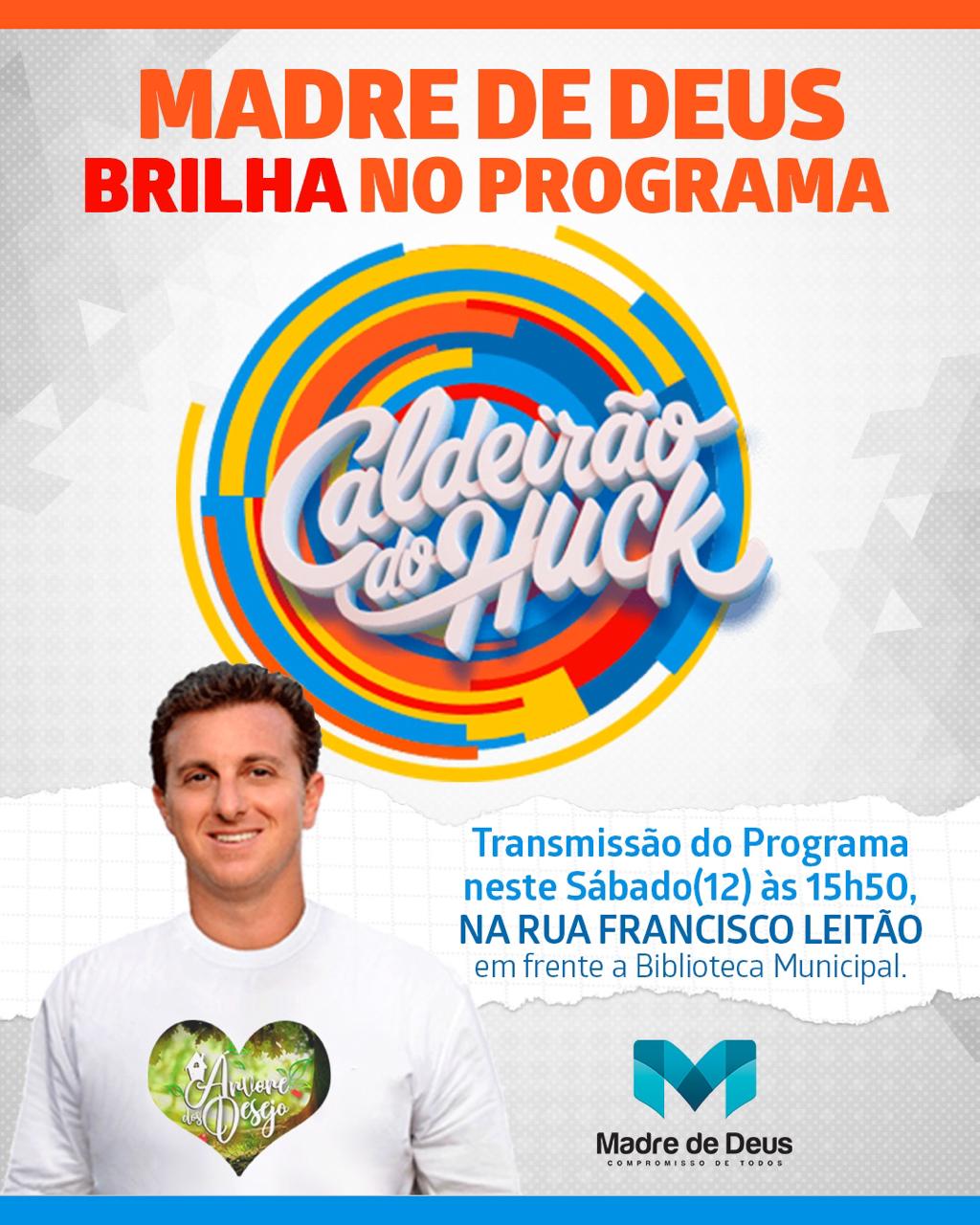 O Caldeirão do Huck deste sábado (12), às 15hs, terá um quadro que foi realizado em Madre de Deus. Luciano Huck e a equipe deste programa da Rede Globo gravaram em uma unidade da rede municipal de ensino. Madre de Deus é a primeira cidade do país onde toda a rede municipal de ensino funciona em tempo integral. Os alunos entram na escola às 7h30 e saem às 16h30, após serem servidas três refeições diárias.