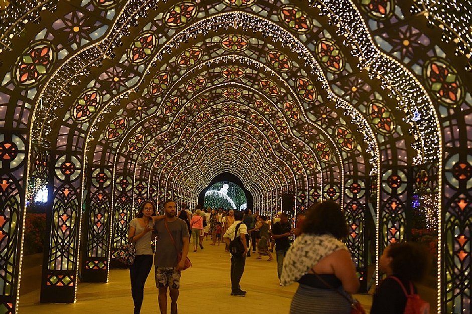 Quem estiver pensando em visitar o local é bom ir com tempo. São muitos os espaços. Quem entra pelos portões que ficam em frente ao Teatro Castro Alves (TCA) é recebido por uma estrutura que lembra os vitrais das igrejas góticas. A ‘Catedral da Luz’, como foi batizada, tem um corredor sonoro e de luzes. À esquerda, uma estrutura luminosa em azul virou point de casais apaixonados.