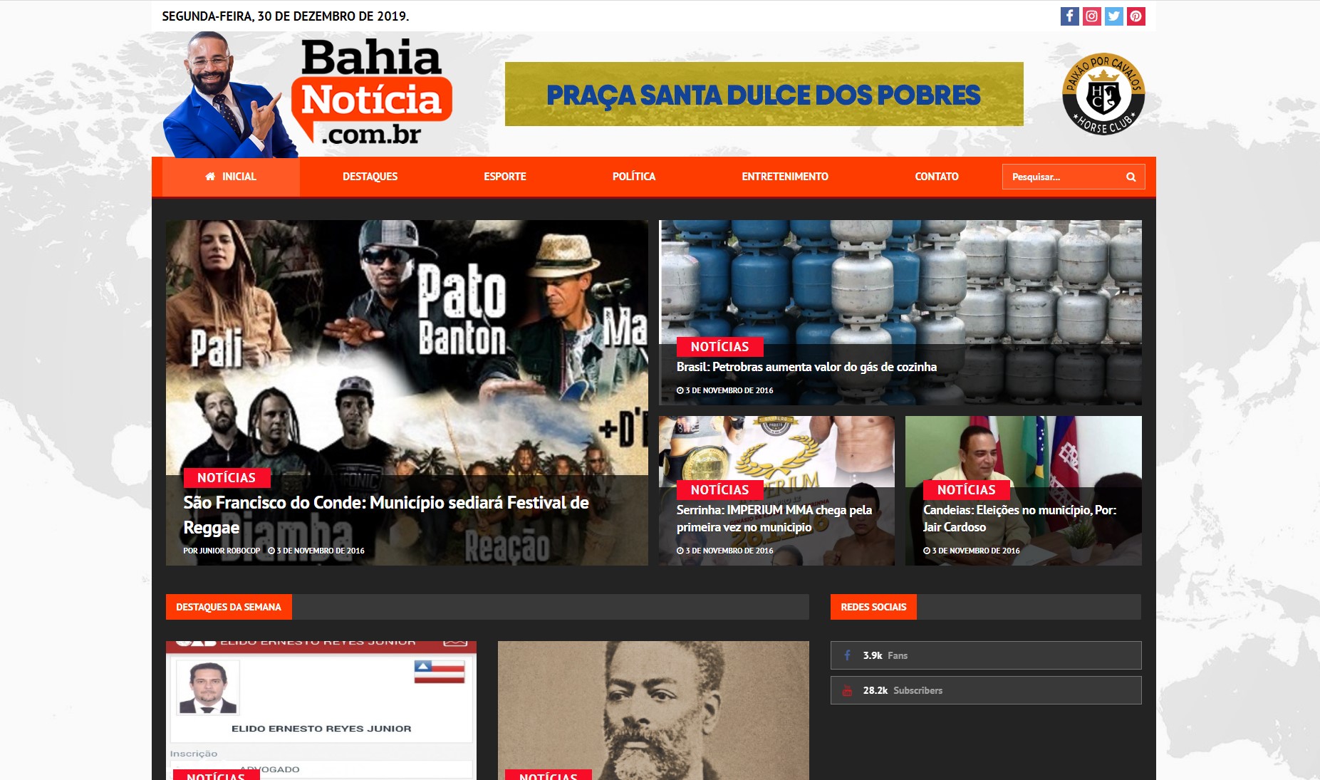 Bahia Notícia com muito orgulho e prazer, ao longo dos seus praticamente 17 anos de história, sempre foi inovador e atual, considerado por muitos o maior e melhor site de municípios da Bahia. Agora para 2020 viemos com um design criativo, um layout mais acessível e dinâmico aos nossos leitores, realizado pelo desenvolvedor e Webdesign Vinicius Azevedo, que procura a cada dia manter o Bahia Notícia com qualidade de topo.